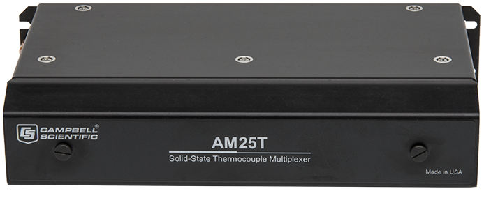 AM25T可以使Campbell出品的數(shù)據(jù)采集器(CR200系列除外)利用1個差分通道來順序測量多達25個熱電偶或其他類似的低電壓傳感器。AM25T順序地切換通道,因而數(shù)據(jù)采集器也是順序地測量每一個熱電偶的輸出。T型、E型、J型和K型熱電偶的測量是標準測量;同時也支持其他類型的熱電偶的測量(取決于數(shù)據(jù)采集器的類型及其操作系統(tǒng))。