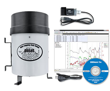 由Onset公司生產(chǎn)的HOBO 自記錄雨量計(jì) RG3-M 自帶一個(gè)HOBO Pendant(UA-003-64)事件/溫度記錄儀,由紐扣式鋰電池供電,可獨(dú)立工作。采集器的內(nèi)存可存儲(chǔ)大約16000組數(shù)據(jù)。該系統(tǒng)可通過(guò)內(nèi)部的翻斗式雨量計(jì)自動(dòng)記錄 3200mm 的降雨數(shù)據(jù),用于確定降雨量、降雨時(shí)間和降雨持續(xù)時(shí)間。儀器頂部配備有數(shù)據(jù)接口,用于下載數(shù)據(jù)。